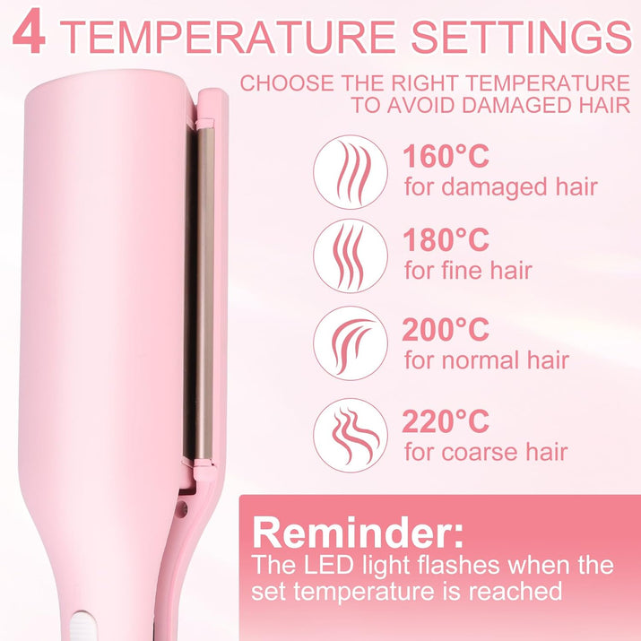 Hair Styling Tool with Negative Ionic Technology, Beach Wave Hair Waver with Negative Ion Technology, Creating Smooth Waves French Style, Waves on All Hair Types (Pink)